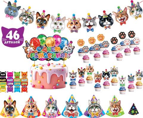 Комплект для праздника "Замурчательный день варенья" гирлянда 2м, колпаки,топперы, фанты