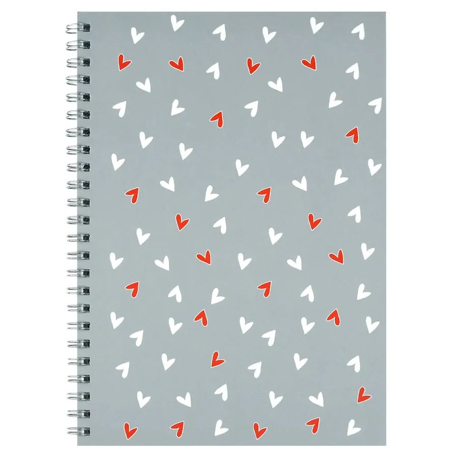 Блокнот А5 48л гребень "Сердечки на сером" кл., мат.лам.