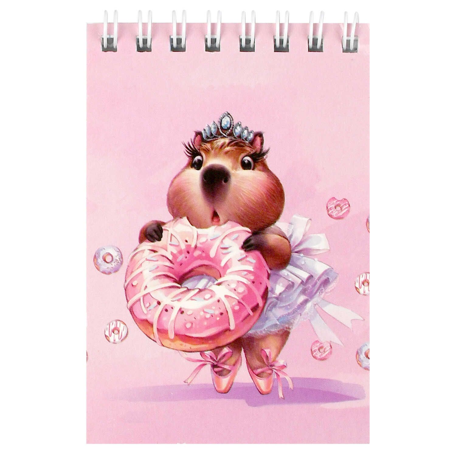 Блокнот А7 40л гребень "Капибара с пончиком" кл., УФ-лак