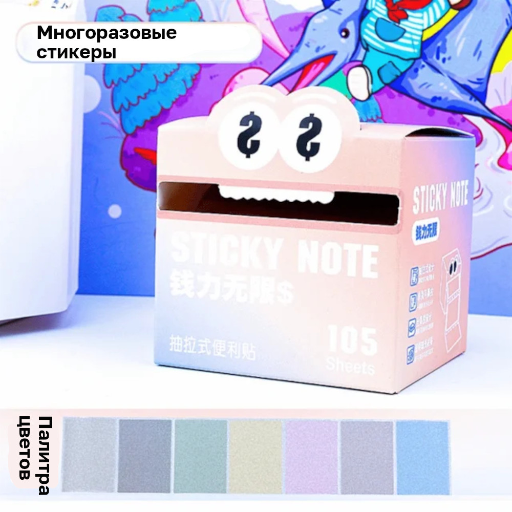 Блок с липким краем (50х70мм) 105л, пластиковый, полупрозрачный, пастель