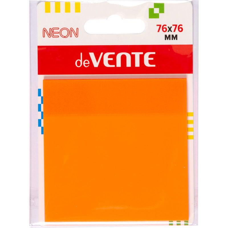 Самоклеящиеся этикетки "deVENTE" пластиковые полупрозрачные, 76x76 мм, 50 листов, неоновые оранжевые, в картонном блистере и пластиковом пакете с европодвесом
