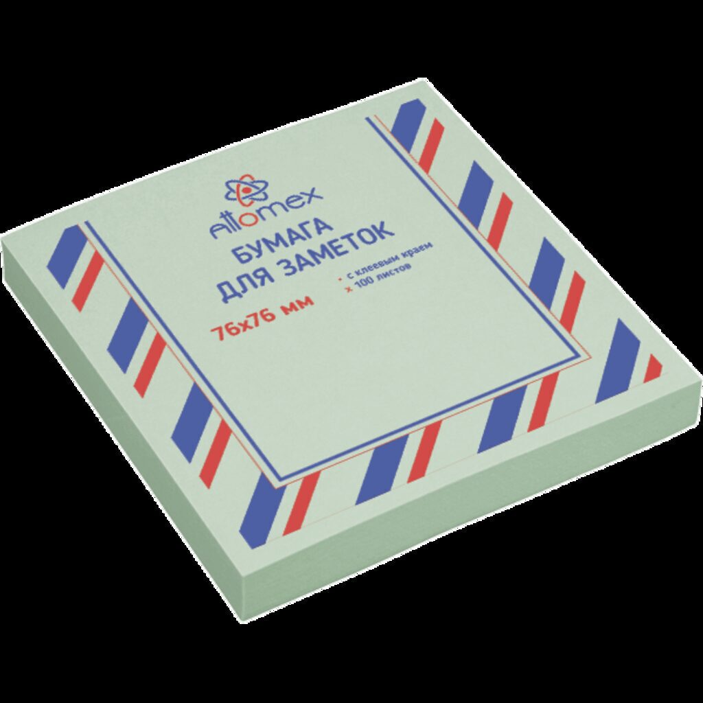Клейкая бумага для заметок "Attomex" 76x76 мм, 100 листов, офсет 75 г/м?, зеленая