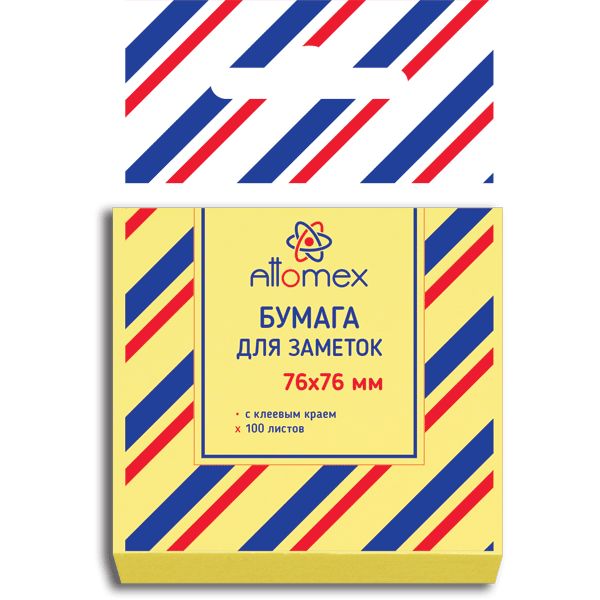 Клейкая бумага для заметок "Attomex" 76x76 мм, 100 листов, офсет 60 г/м, желтая