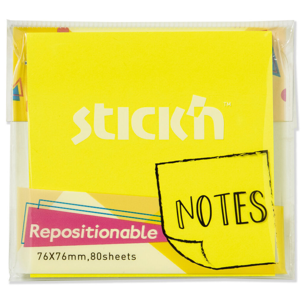 Блок самоклеящийся бумажный Stick`n 27070 76x76мм 80лист. 70г/м2 желтый неон 1цв.в упак.