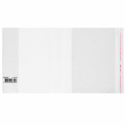 Обложка ПП со штрихкодом для дневников, учебников, прописей МАЛОГО ФОРМАТА, КЛЕЙКИЙ КРАЙ, 80 мкм, 220х460 мм, прозрачная, ПИФАГОР, 229346