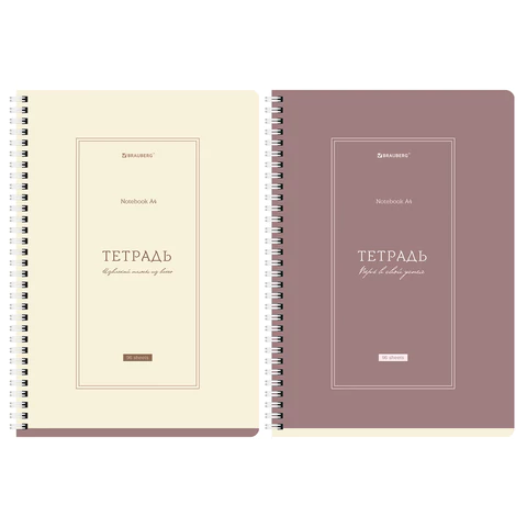 Тетради ДЭК А4 96 л. КОМПЛЕКТ 2 шт. BRAUBERG гребень, клетка, матовая ламинация, CLASSIC, 404880