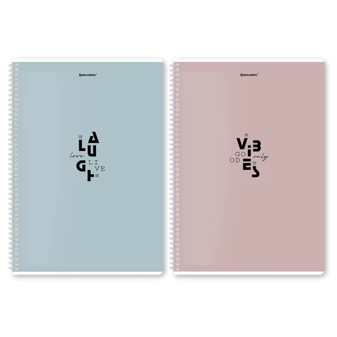 Тетради ДЭК А4 96 л. КОМПЛЕКТ 2 шт. BRAUBERG гребень, клетка, матовая ламинация, "Пастель_3", 404885