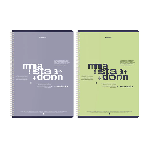 Внутренний блок содержит 96 листов офсетной бумаги плотностью 60 г/м2. Обложка изготовлена из мелованного картона со спецэффектом выборочный TWIN-лак. Линовка – клетка. Гребень надежно скрепляет листы между собой. Белизна – 100%. Формат А4.
