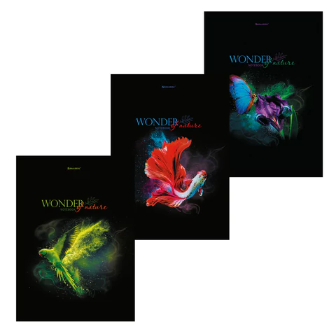 Внутренний блок содержит 96 листов офсетной бумаги плотностью 65 г/м2. Обложка изготовлена из мелованного картона с глянцевым лаком. Линовка – клетка. Скоба надежно скрепляет листы между собой. Белизна – 100%. Формат А4.