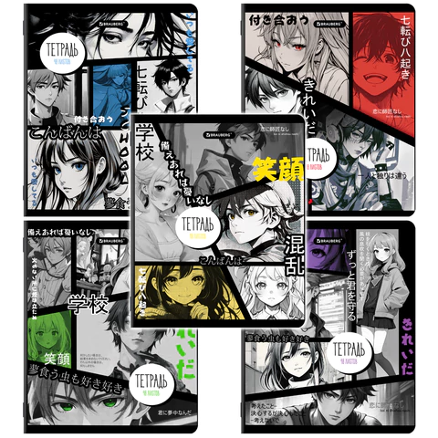 Тетради ДЭК А5 48 л. КОМПЛЕКТ 5 шт. BRAUBERG, скоба, клетка, глянцевый лак, "АНИМЕ", 404939