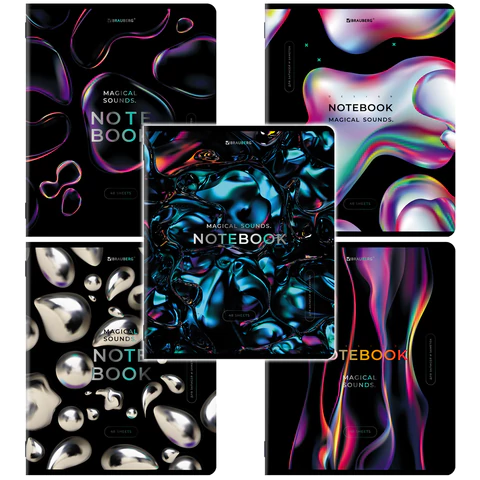Тетради ДЭК А5 48 л. КОМПЛЕКТ 5 шт. BRAUBERG, скоба, клетка, глянцевый лак, "MAGICAL", 404944