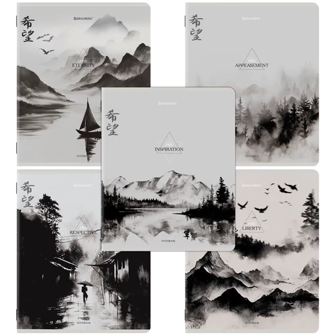 Тетради ДЭК А5 48 л. КОМПЛЕКТ 5 шт. BRAUBERG скоба, клетка, матовая ламинация, CALM NATURE, 404951