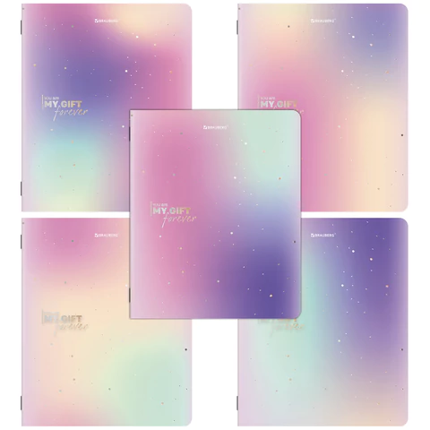 Тетради ДЭК А5 48 л. КОМПЛЕКТ 5 шт. BRAUBERG, скоба, клетка, матовая ламинация, фольга, "SHINE", 404962