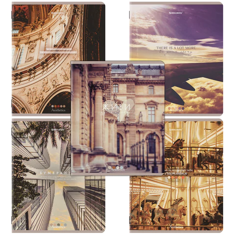 Тетради ДЭК А5 48 л. КОМПЛЕКТ 5 шт. BRAUBERG скоба, клетка, матовая ламинация, GRACE, 404935