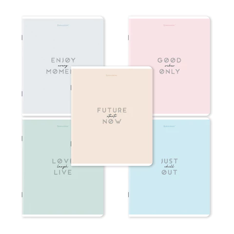 Тетради ДЭК А5 48 л. КОМПЛЕКТ 5 шт. BRAUBERG скоба, клетка, матовая ламинация, "Однотонный_Пастель", 404923