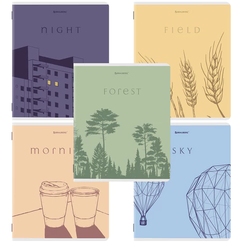 Тетради ДЭК А5 48 л. КОМПЛЕКТ 5 шт. BRAUBERG скоба, клетка, матовая ламинация, СИЛУЭТЫ, 404921
