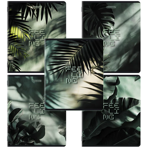 Тетради ДЭК А5 48 л. КОМПЛЕКТ 5 шт. BRAUBERG скоба, клетка, матовая ламинация, TROPICAL, 404956