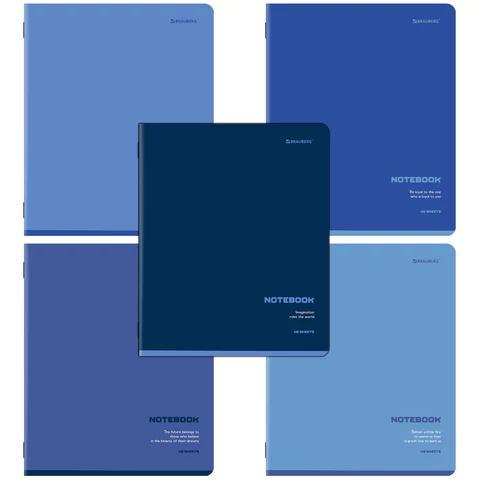 Тетради ДЭК А5 48 л. КОМПЛЕКТ 5 шт. BRAUBERG, скоба, клетка, SoftTouch, "КЛАССИКА BLUE", 404913