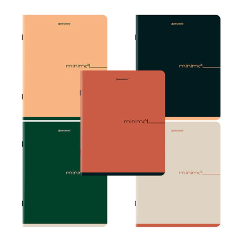 Тетради ДЭК А5 48 л. КОМПЛЕКТ 5 шт. BRAUBERG скоба, клетка, SoftTouch, "Минимал_Цвет", 404917