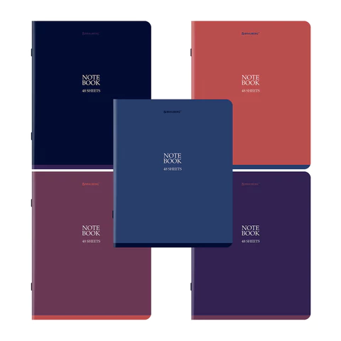 Тетради ДЭК А5 48 л. КОМПЛЕКТ 5 шт. BRAUBERG скоба, клетка, SoftTouch, "NoteBookMono", 404911