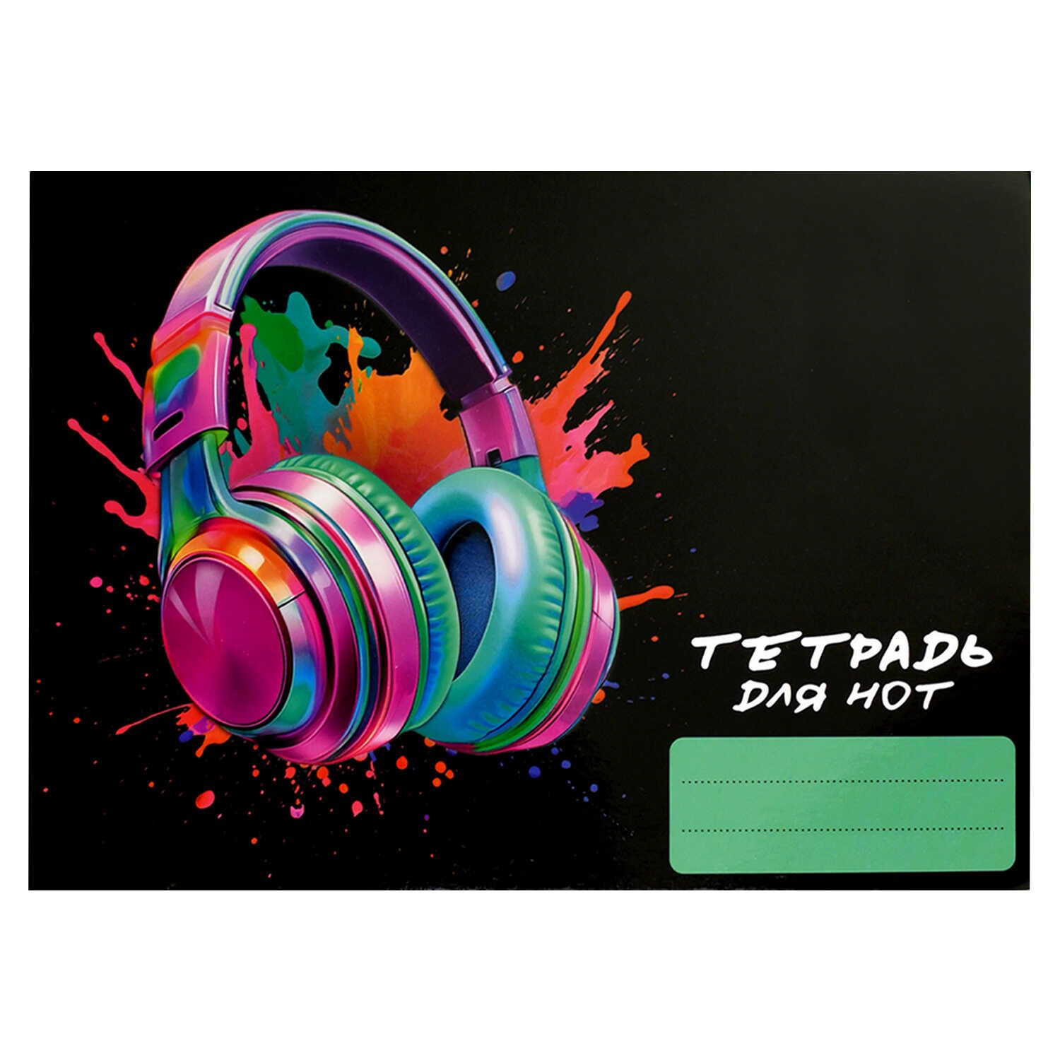 Тетрадь для нот А5 16л., гориз., скоба "Неоновый звук"