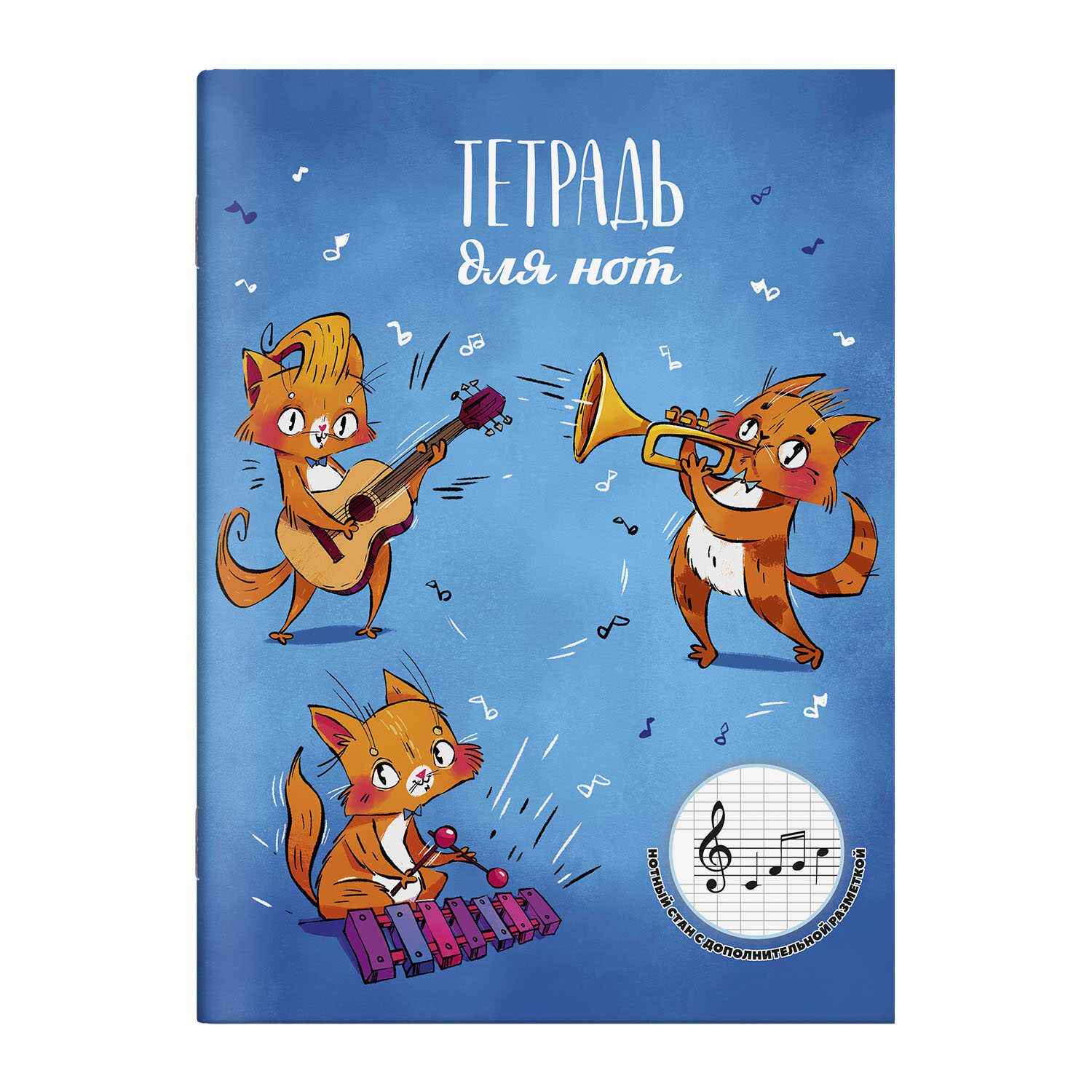 Тетрадь для нот А4 16л., вспом.линии нотного стана, вертик., скоба "Рыжие музыканты"