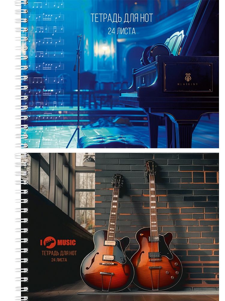 Тетрадь для нот А5 24л., гориз., гребень "Инструменты перед концертом"