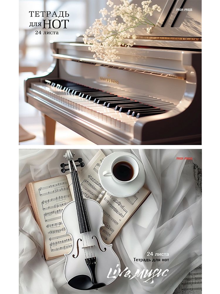 Тетрадь для нот А5 24л., гориз., скоба "Инструменты и белая студия"