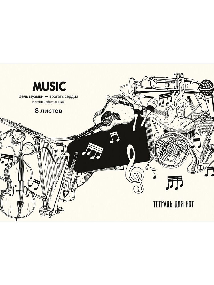 Тетрадь для нот А4 8л., гориз., скоба "Инструменты и цитата композитора"
