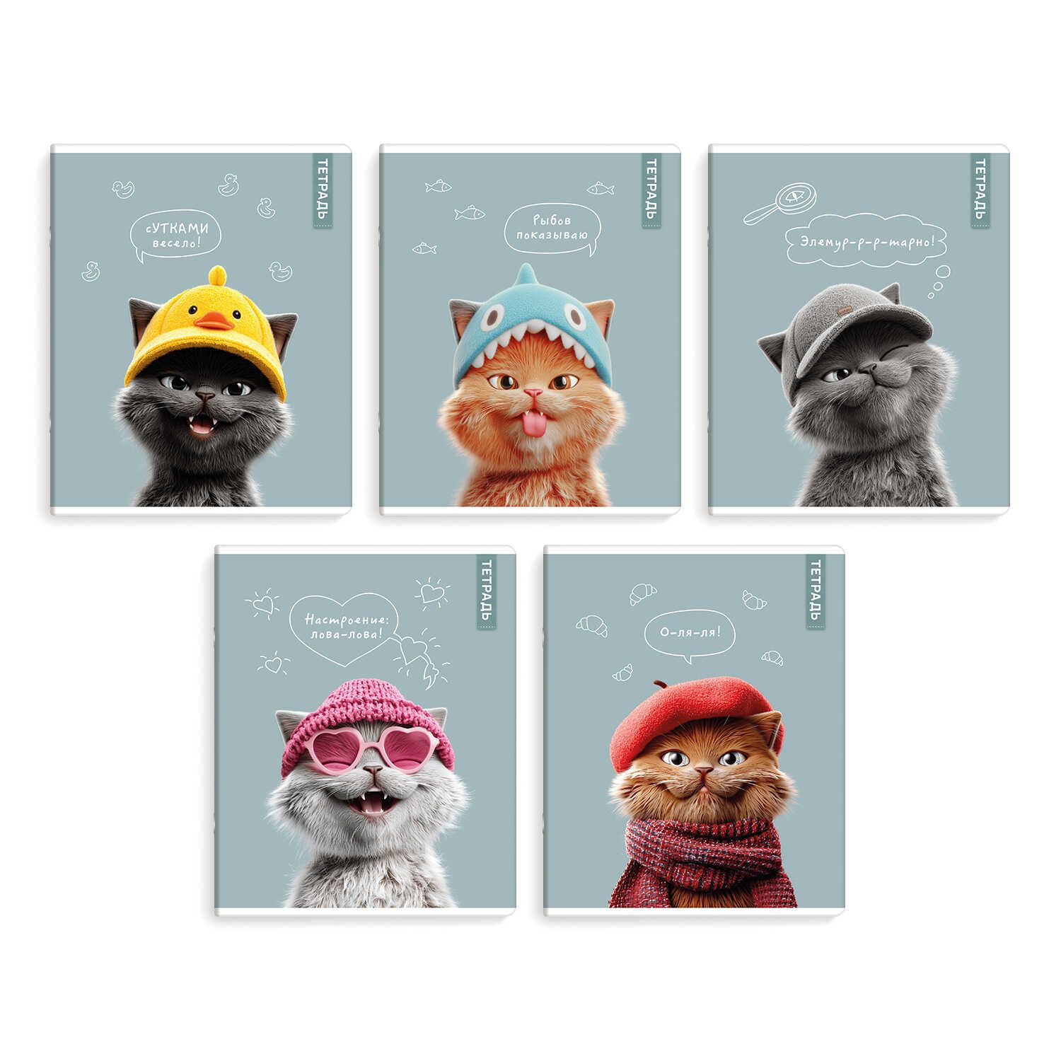 Тетрадь А5 48л кл. Феникс+ "Коты в школе" выб.твин-лак