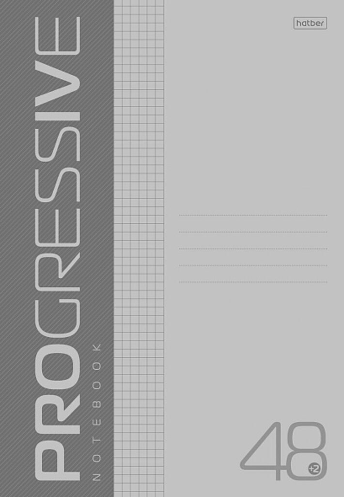 Тетрадь А4 48л кл. скоба Hatber пласт.обл. "Прогрессия. Серая"*