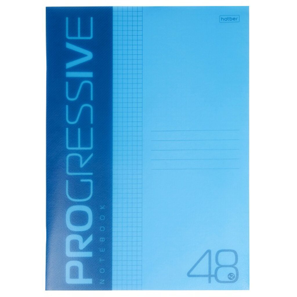 Тетрадь А4 48л кл. скоба Hatber пласт.обл. "Прогрессия. Синяя"*