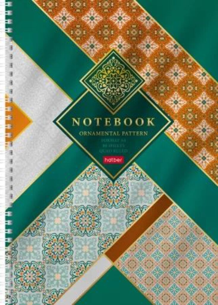 Тетрадь А4 80л кл. гребень Hatber "Gold ornament" выб.лак.*