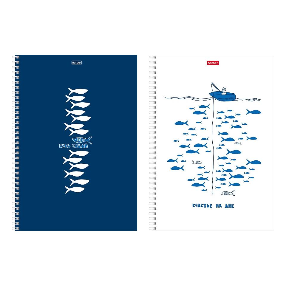Тетрадь А4 80л кл. гребень Hatber "Рыба моя" перф.на отрыв, цв.срез, софт-тач, 2диз.*