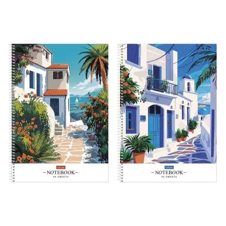 Тетрадь А4 96л кл. гребень Hatber "Солнечные кварталы" 2диз.в блоке, тисн., перф.на отрыв