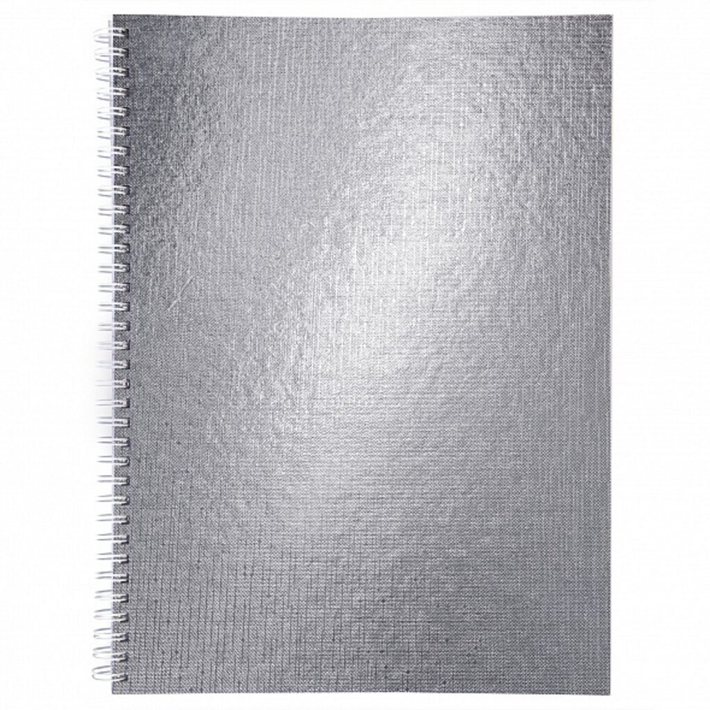 Тетрадь А4 96л кл. гребень бумвинил Hatber "Металлик Серебро"