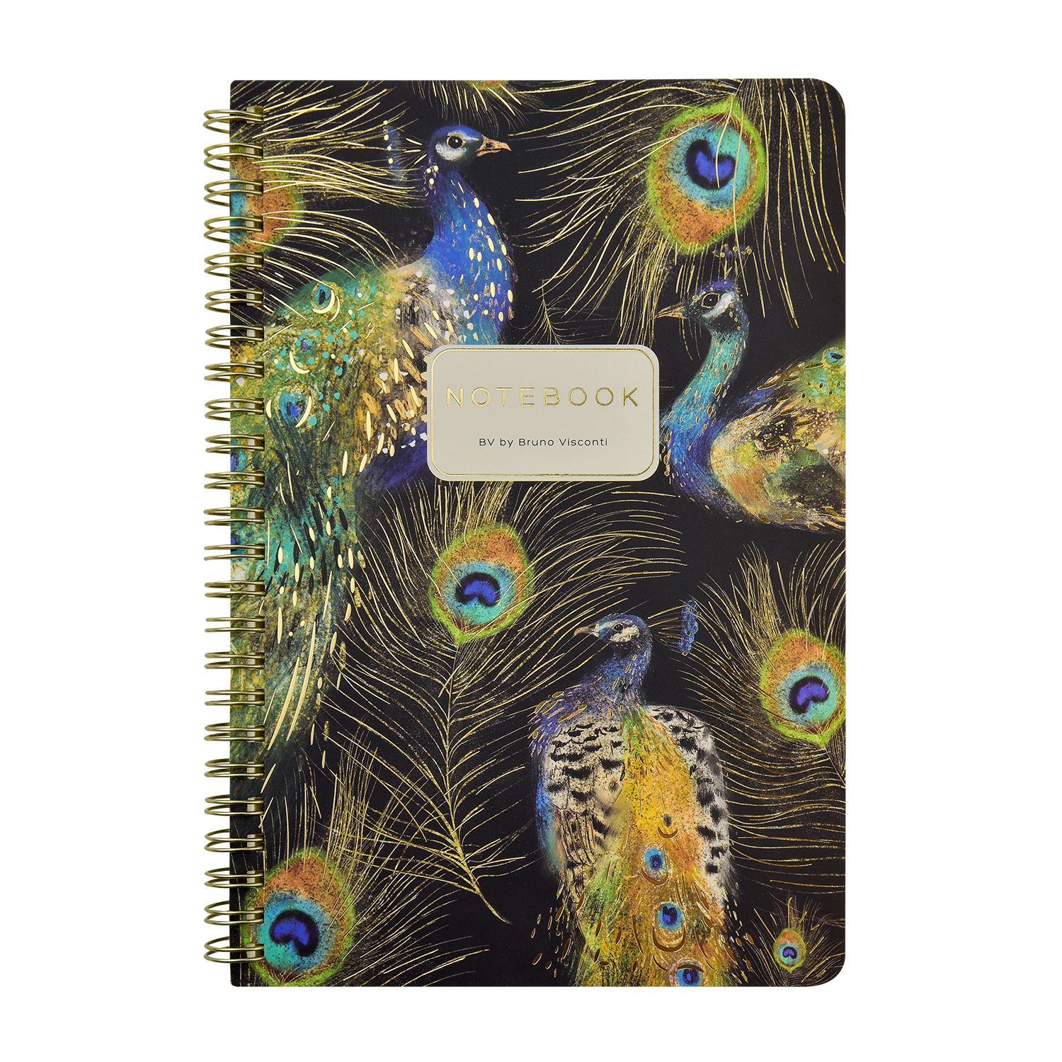 Записная книжка А5 60л. картон, гребень "Fauna. Павлины" кл., софт-тач, фольга