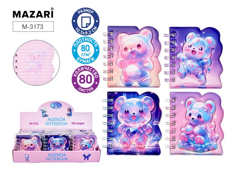 Записная книжка А7 80л. гребень ПВХ "Нео мишка" лин., мягк.обл.
