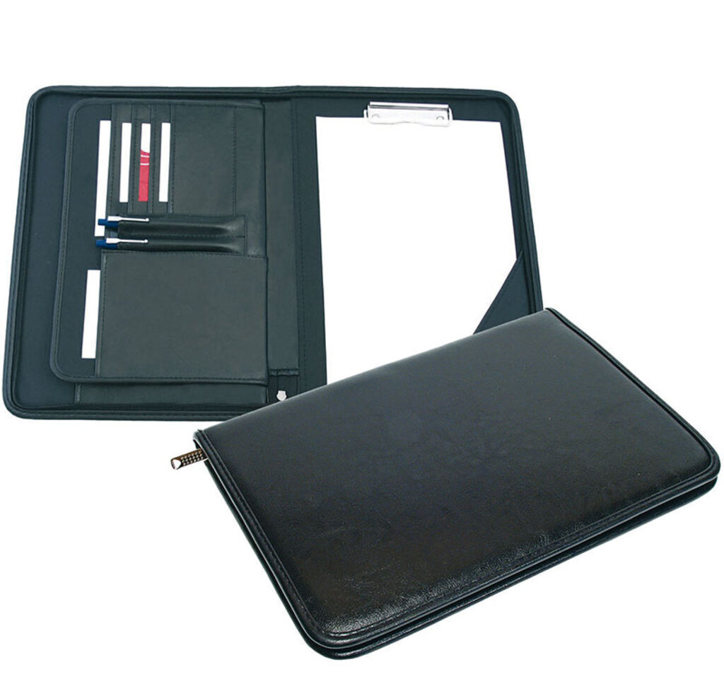 Папка деловая к/з А4 30мм 1 отделение Чёрная, 2 кармана, зажим для бумаг, на молнии