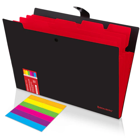 Папка-органайзер на кнопке 5 отделений, BRAUBERG "Extra", А4, черная с красным, 274095