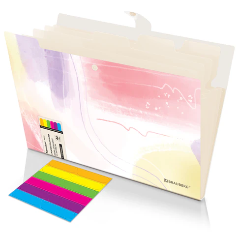 Папка-органайзер на кнопке 5 отделений, BRAUBERG "Extra", А4, пастельные узоры, 274100