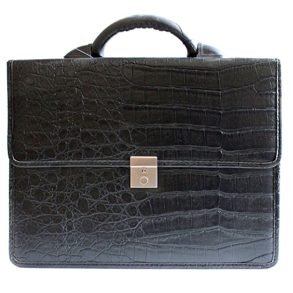 Портфель к/з Кировск 2 отд.,1 мет/замок, 1 ручка, крокодил, чёрный