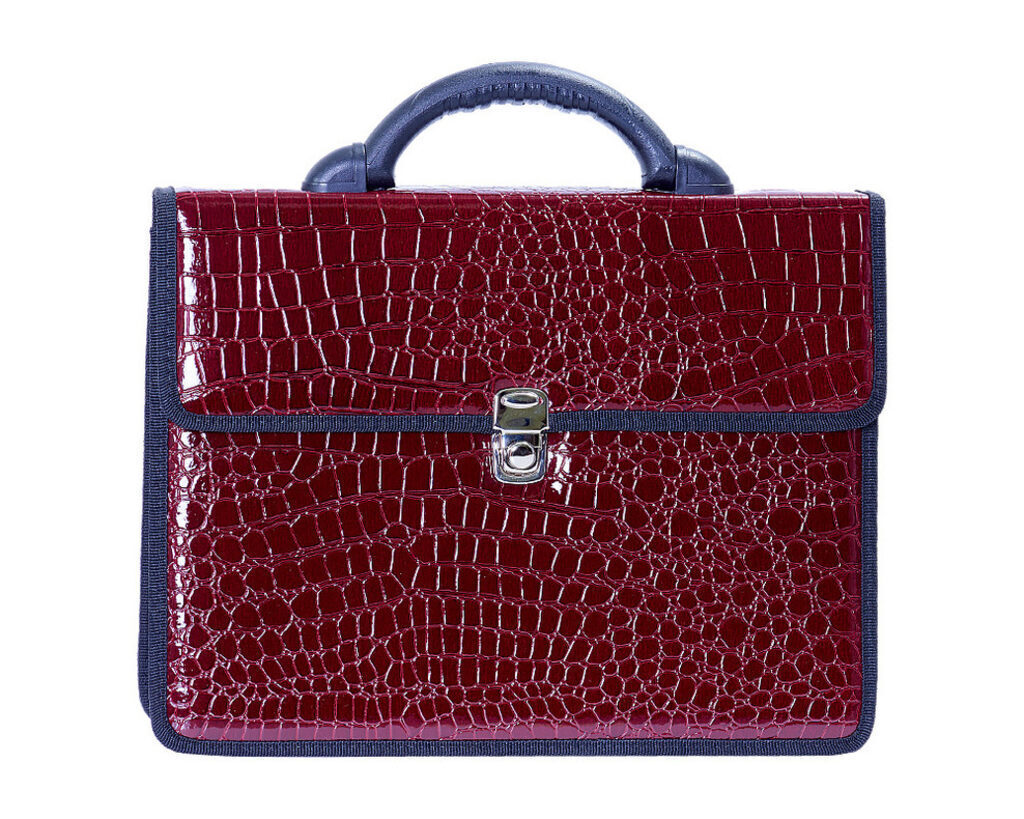 Портфель на металическом замке, покрытый лаком с отделкой под кожу крокодила. Имеется два отделения. 260*350