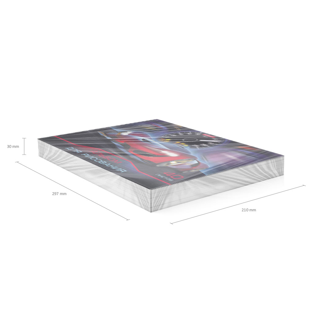 Альбом для рисования формата А4 (210х297 мм). Обложка из высококачественного мелованного картона плотностью 170 г/м2. Жесткая подложка 360 г/м2. В блоке 40 листов. Бумага плотностью 120 г/м2. Белизна бумаги - 100%. Тип скрепления - клей. Альбомы упакованы в термоусадочную пленку по 5 штук.