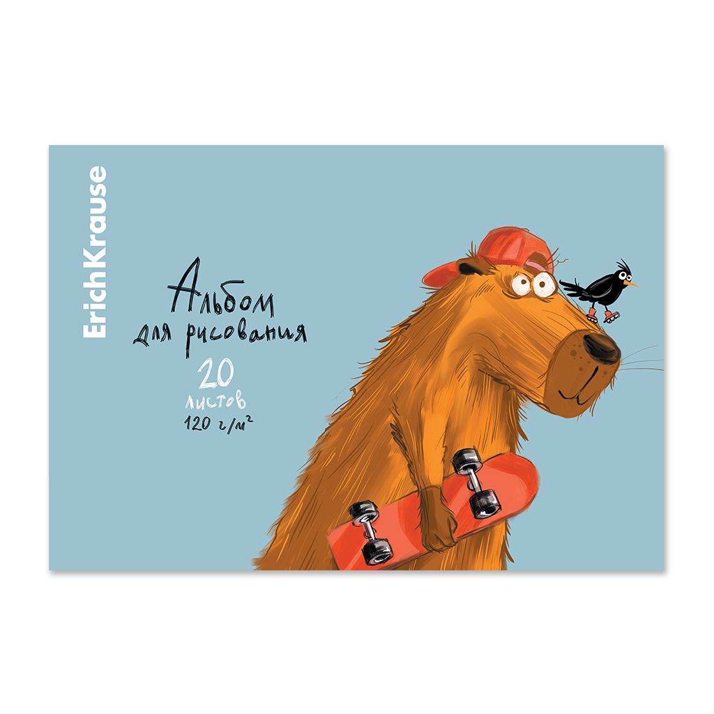 Альбом для рисования формата А4 (210х297 мм). Обложка из высококачественного мелованного картона плотностью 170 г/м2. Жесткая подложка 360 г/м2. В блоке 20 листов. Бумага плотностью 120 г/м2. Белизна бумаги - 100%. Тип скрепления - клей. Альбомы упакованы в термоусадочную пленку по 10 штук.