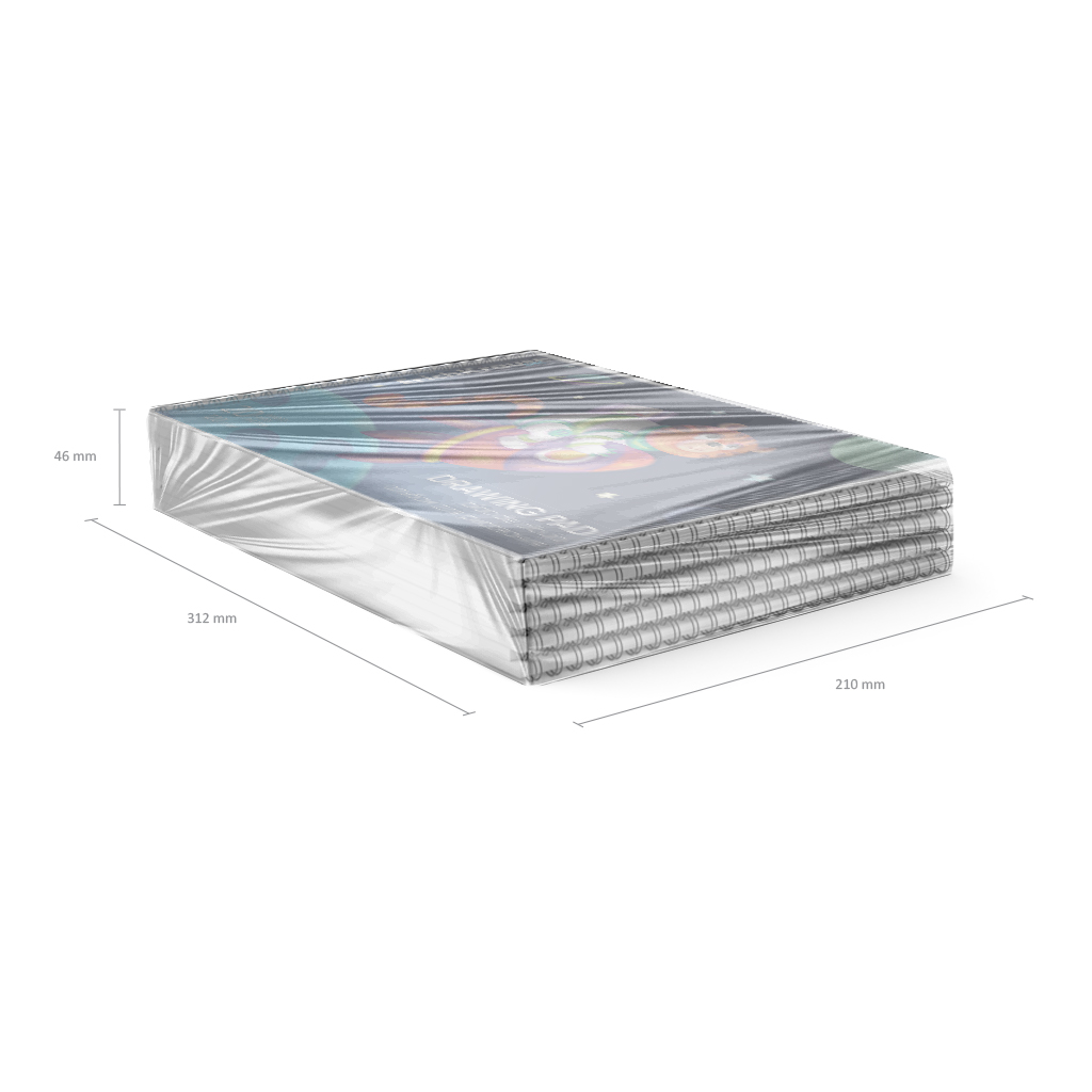 Альбом для рисования формата А4 (210х294 мм). Обложка из высококачественного мелованного картона плотностью 170 г/м2. Жесткая подложка 360 г/м2. В блоке 20 листов. Бумага плотностью 120 г/м2. Белизна бумаги - 100%. Микроперфорация для отрыва. Тип скрепления - спираль. Альбомы упакованы в термоусадочную пленку по 10 штук.