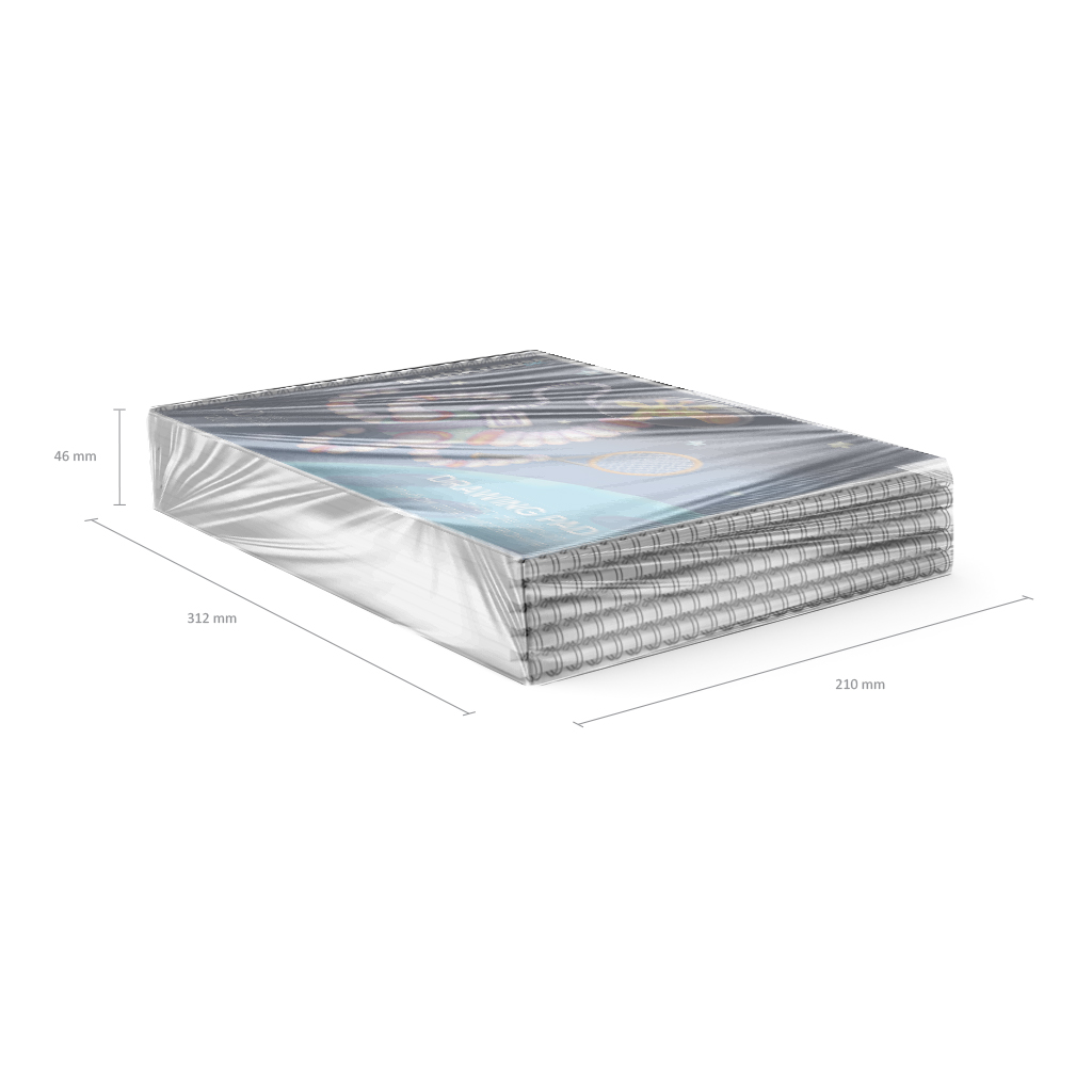Альбом для рисования формата А4 (210х294 мм). Обложка из высококачественного мелованного картона плотностью 170 г/м2. Жесткая подложка 360 г/м2. В блоке 40 листов. Бумага плотностью 120 г/м2. Белизна бумаги - 100%. Микроперфорация для отрыва. Тип скрепления - спираль. Альбомы упакованы в термоусадочную пленку по 5 штук.