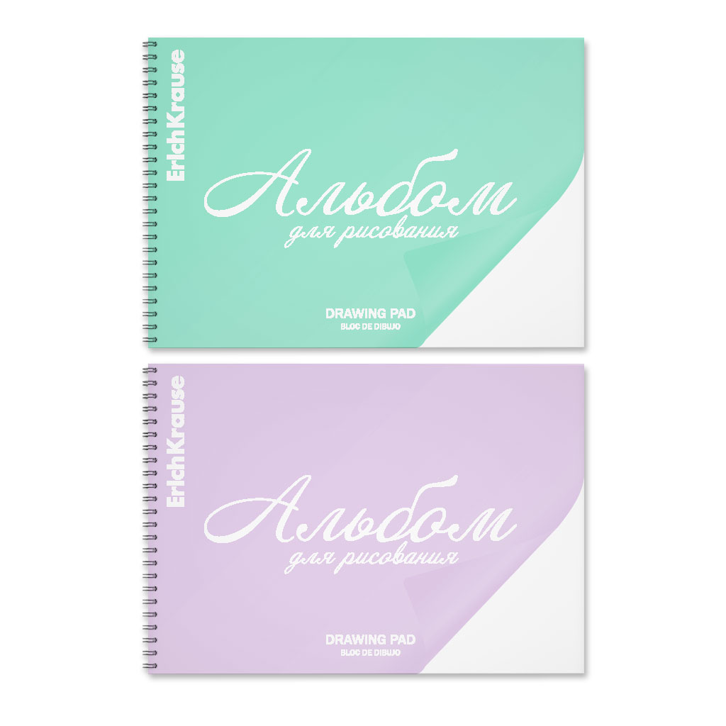 Комплект из 2 альбомов для рисования формата А4 (210х297 мм). Обложка альбомов выполнена из высококачественного мелованного картона плотностью 170 г/м2. Жесткая подложка 360 г/м2. В блоке 40 листов бумаги плотностью 120 г/м2 с микроперфорацией для отрыва. Белизна бумаги - 100%. Тип скрепления - спираль. Альбомы упакованы в прозрачный пакет.