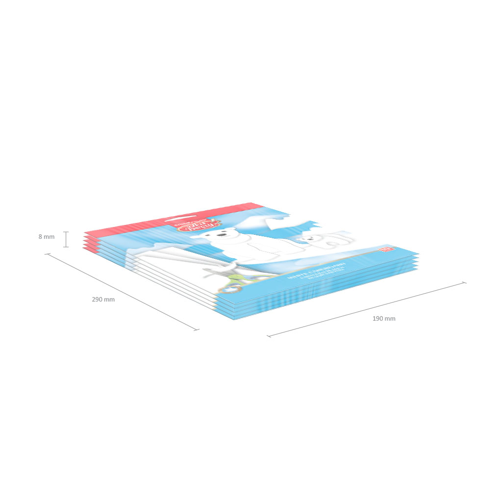Белый картон мелованный формата В5 (176х250 мм). В папке 10 листов. Плотность наполнения - 170 г/м2. Папка с европодвесом из плотного мелованного картона. На оборотной стороне папки приводятся инструкции по изготовлению поделок. Упакован в термоусадочную пленку по 5 штук.