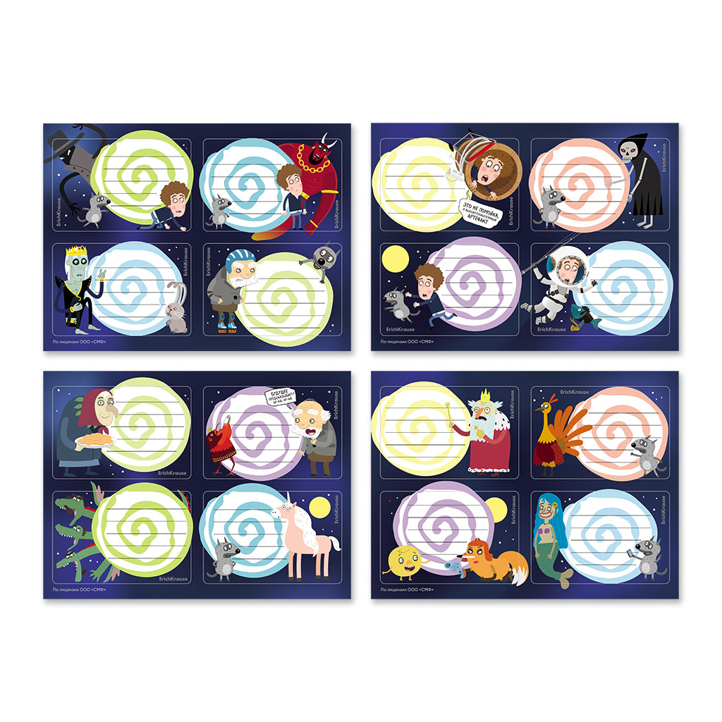Наклейки на тетради, книги, дневники, альбомы. В наборе 16 штук формата 60х90мм. Наклейки изготовлены из самоклеящейся бумаги, вырезаны по контуру, легко снимаются с подложки и надежно крепятся на любой гладкой, чистой поверхности. На стикерах можно легко писать любой шариковой, гелевой ручкой или маркером. Упакованы в прозрачный пакет с подвесом.